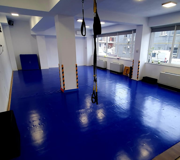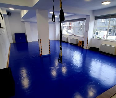 Gândită pentru antrenamente de grup, aici organizăm clase dinamice care includ FastShape pentru femei, clase de autoapărare (Jiu-Jitsu anti-bullying pentru copii), dar și alte activități menite să îmbunătățească mobilitatea și tonusul muscular.